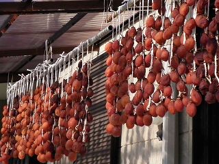 大量の干し柿が吊るされているのが